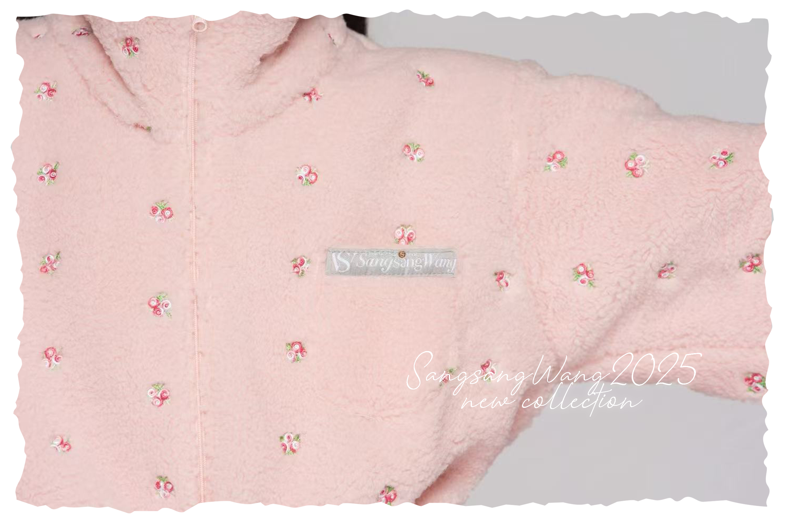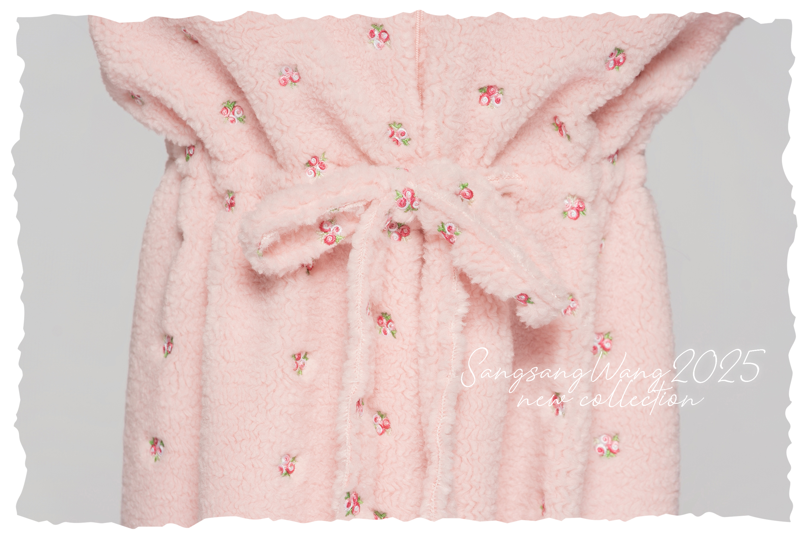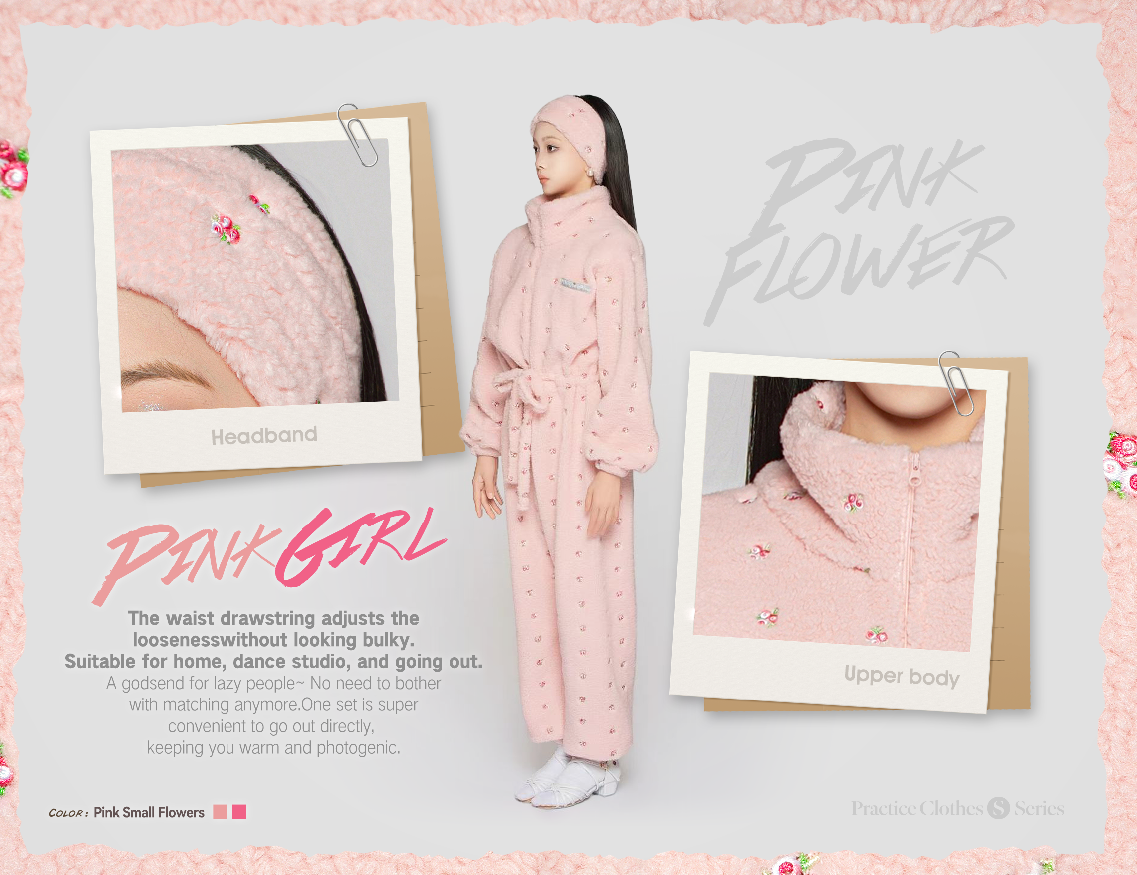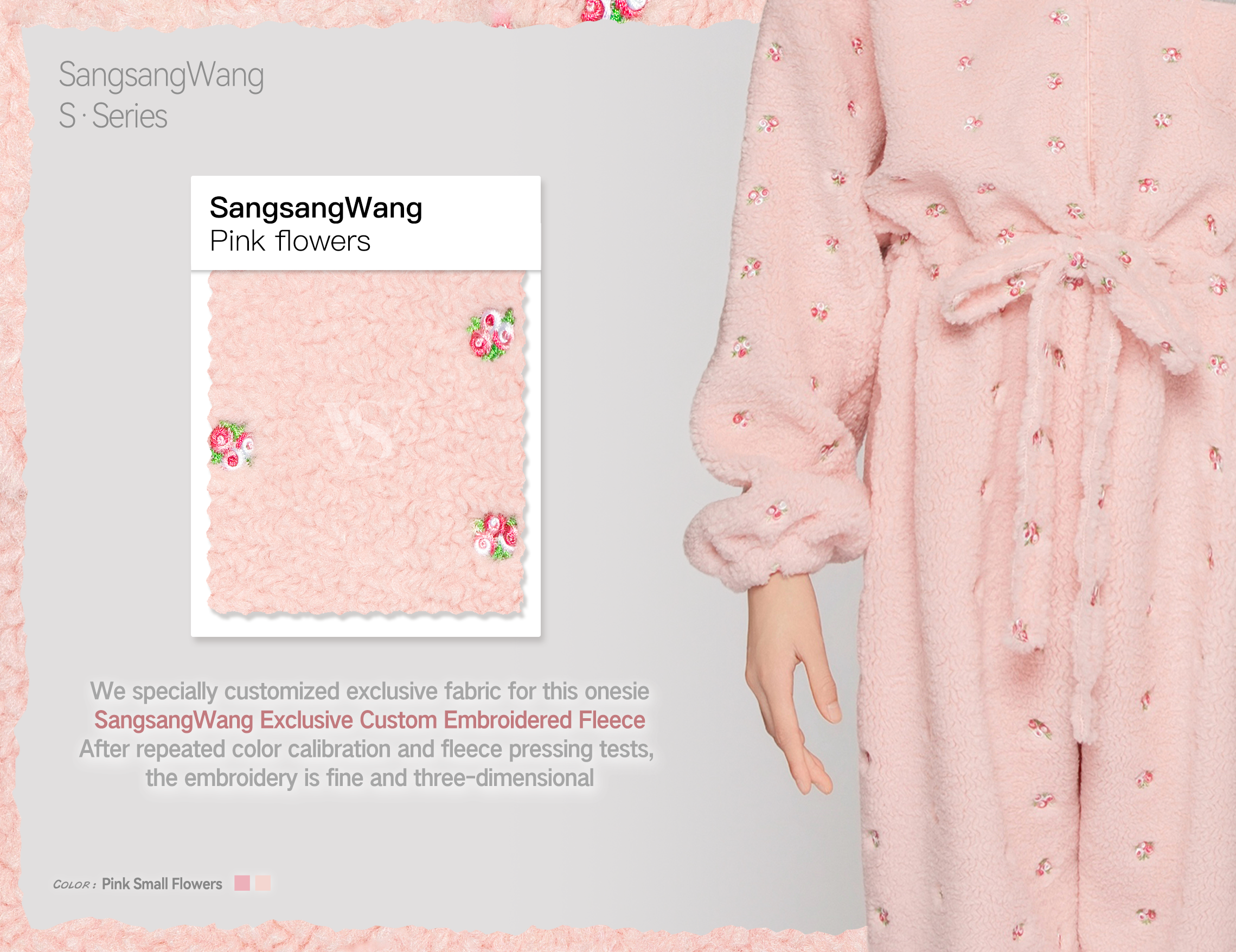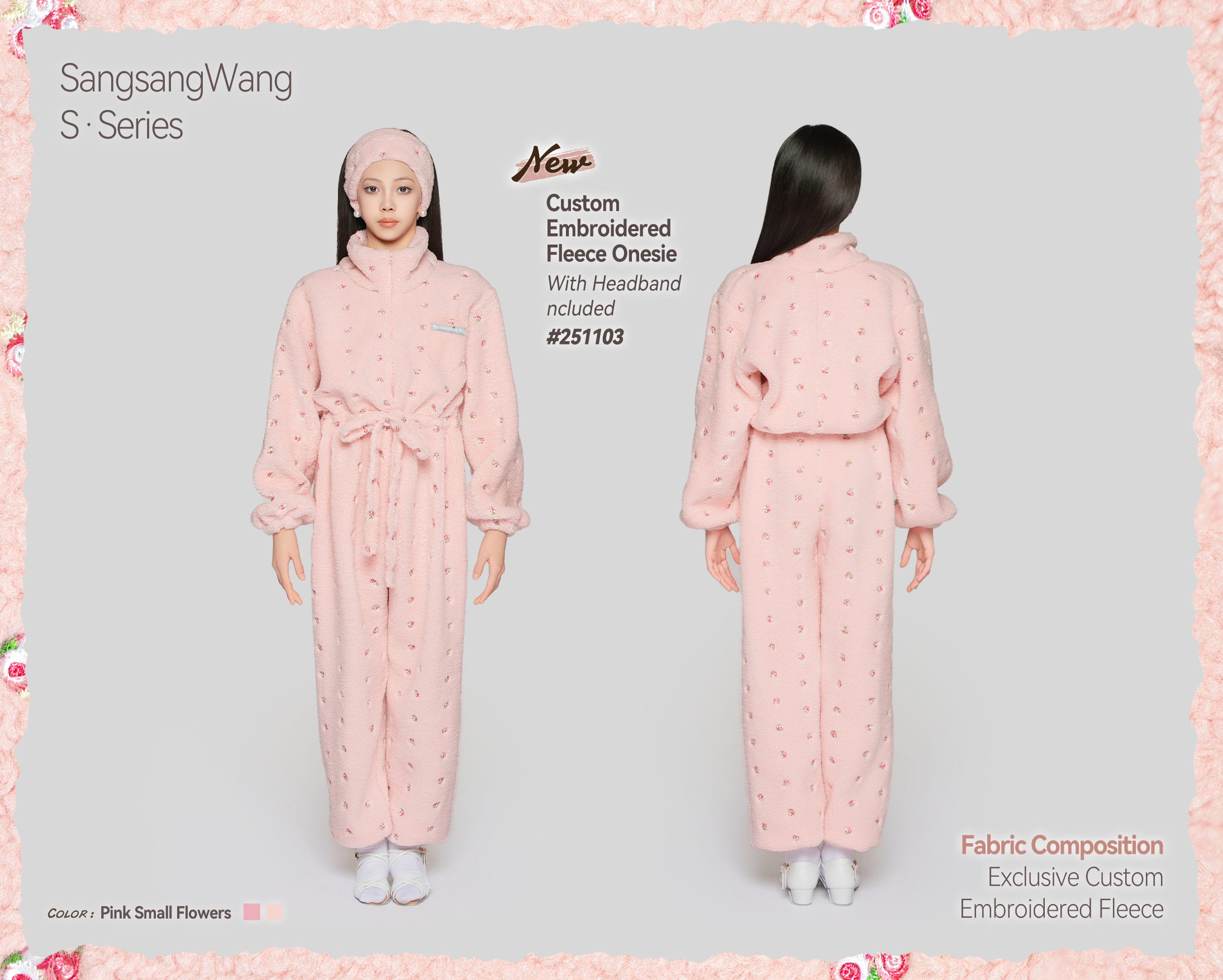 Girls' Custom Embroidered Fleece Onesie (Pink Small Flowers)#251103