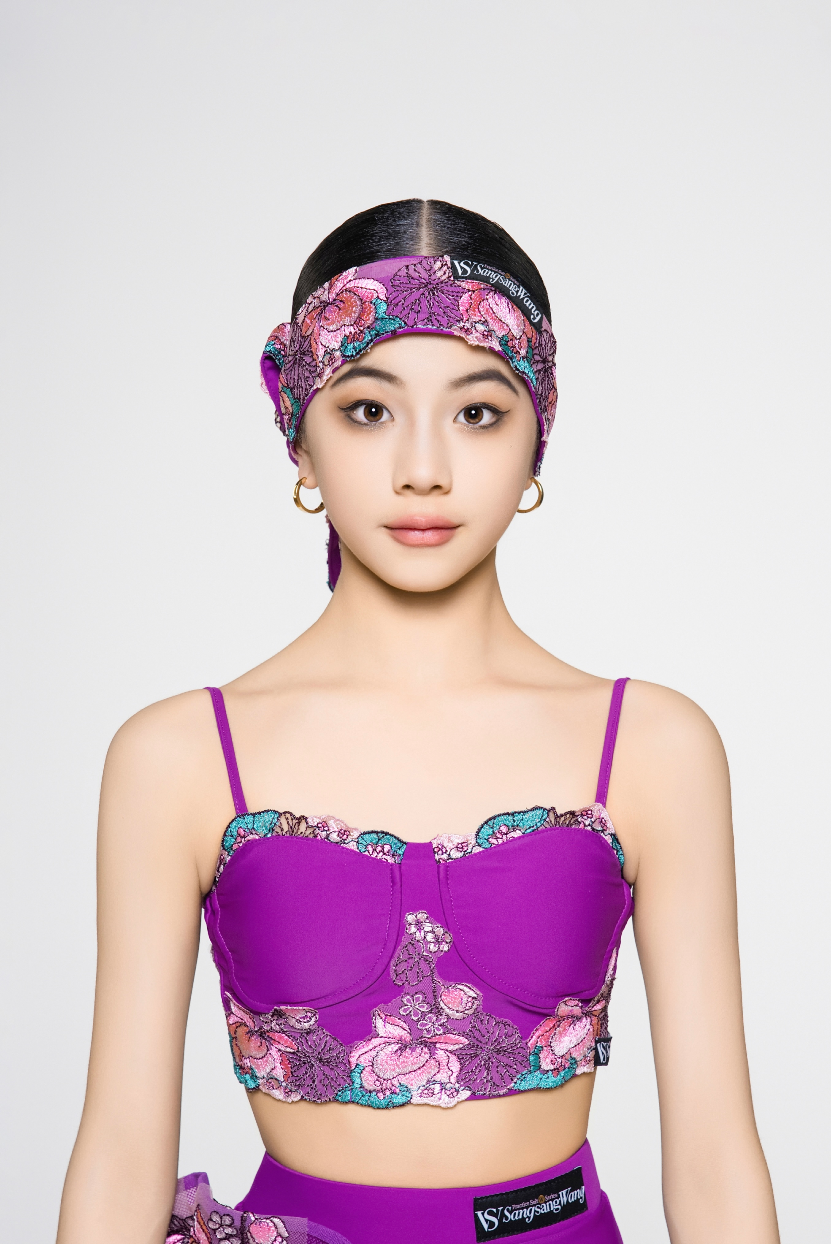 Girls' Embroidered Short Sleeveless Top (Violet)#250424