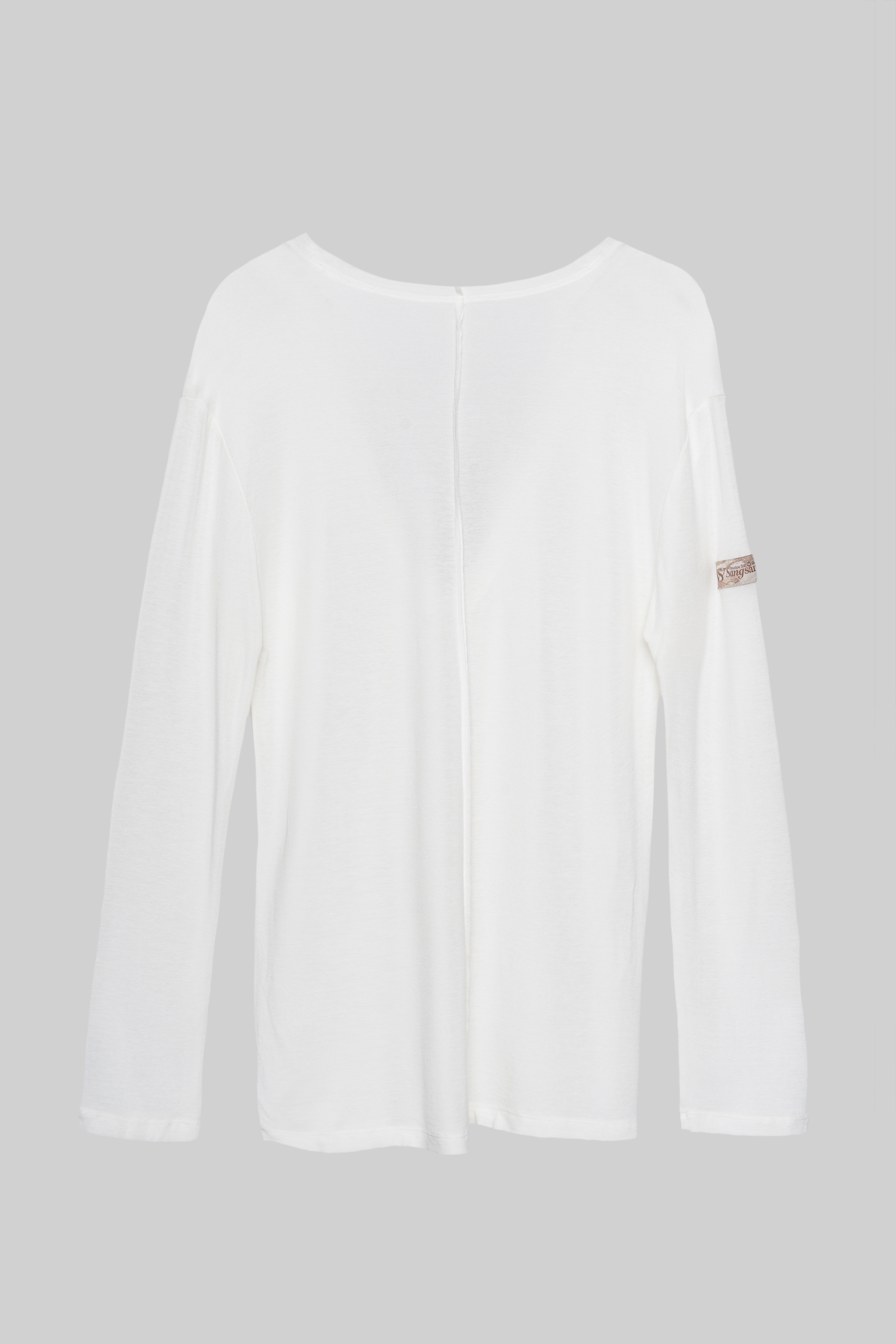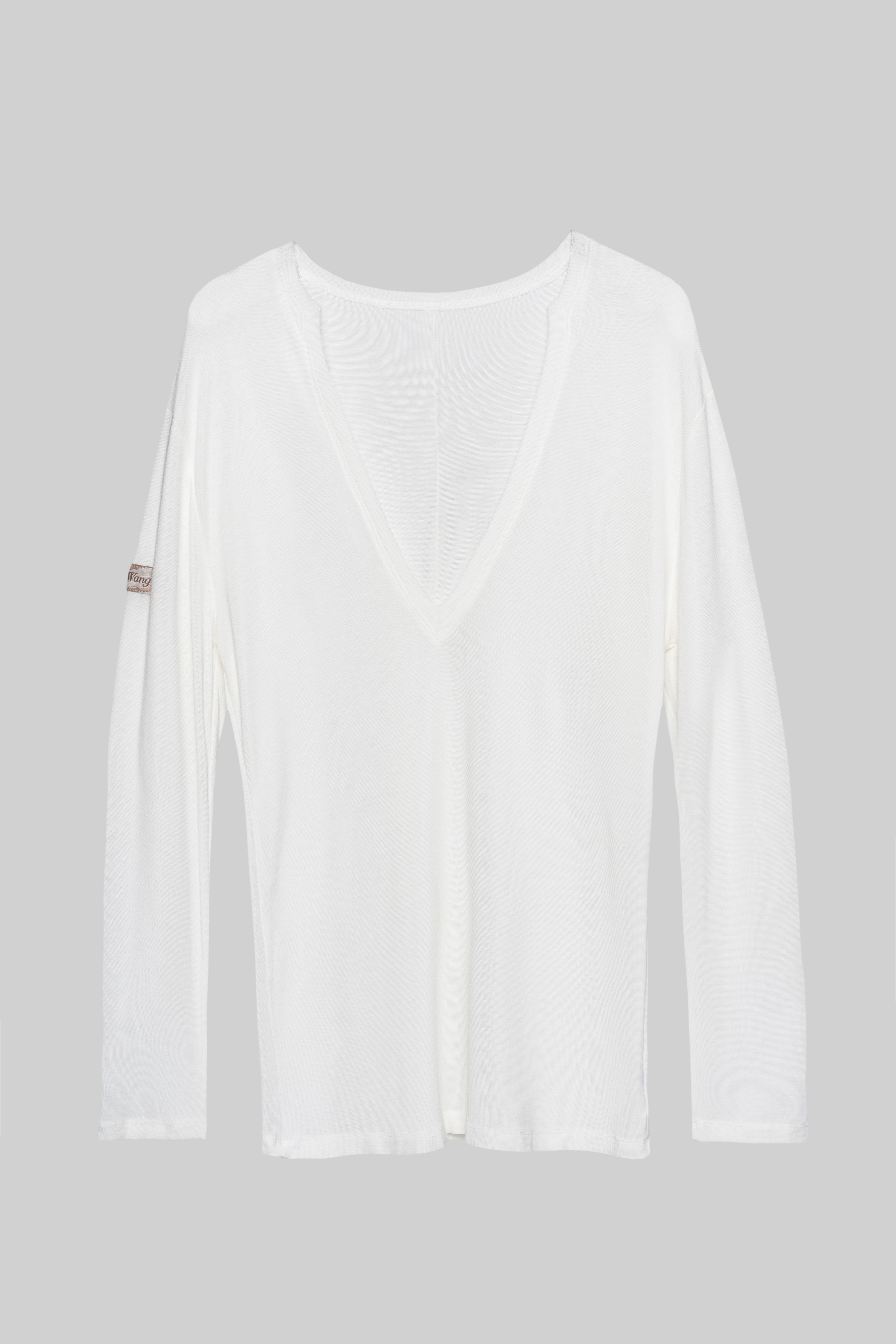Men's Frayed Hem V Neck Top(White)#251001