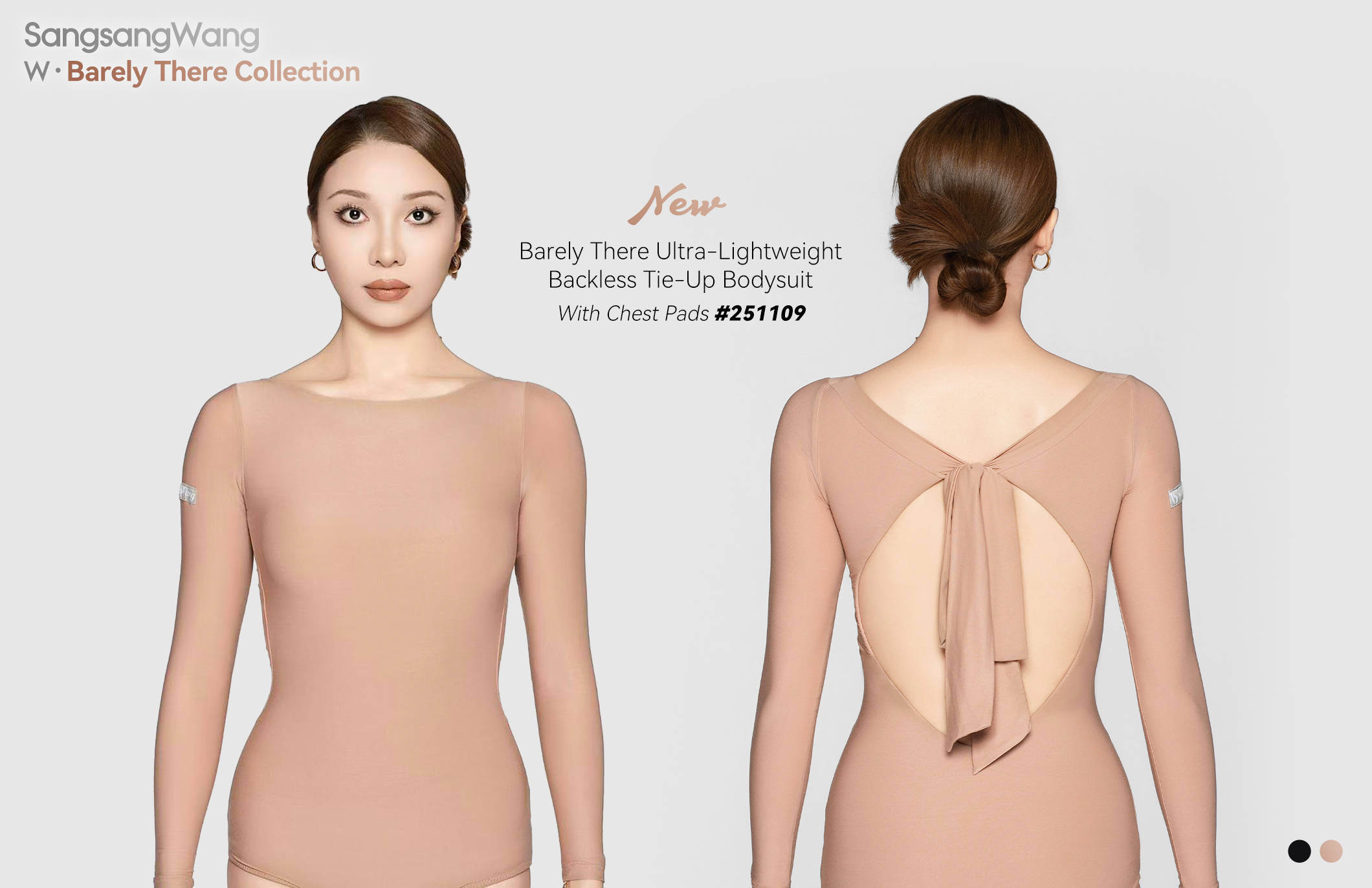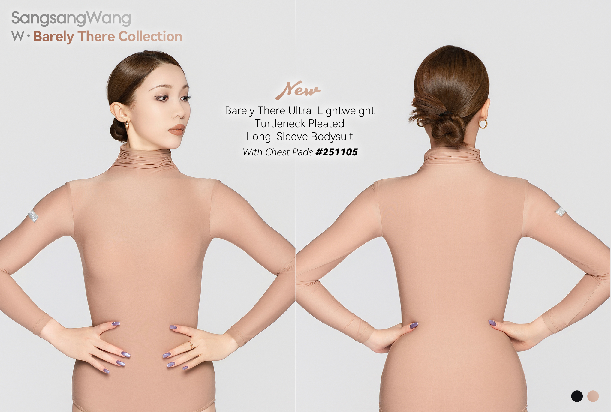 Women's Barely There Ultra-Lightweight Turtleneck Pleated Long-Sleeve Bodysuit(Nude)#251105
