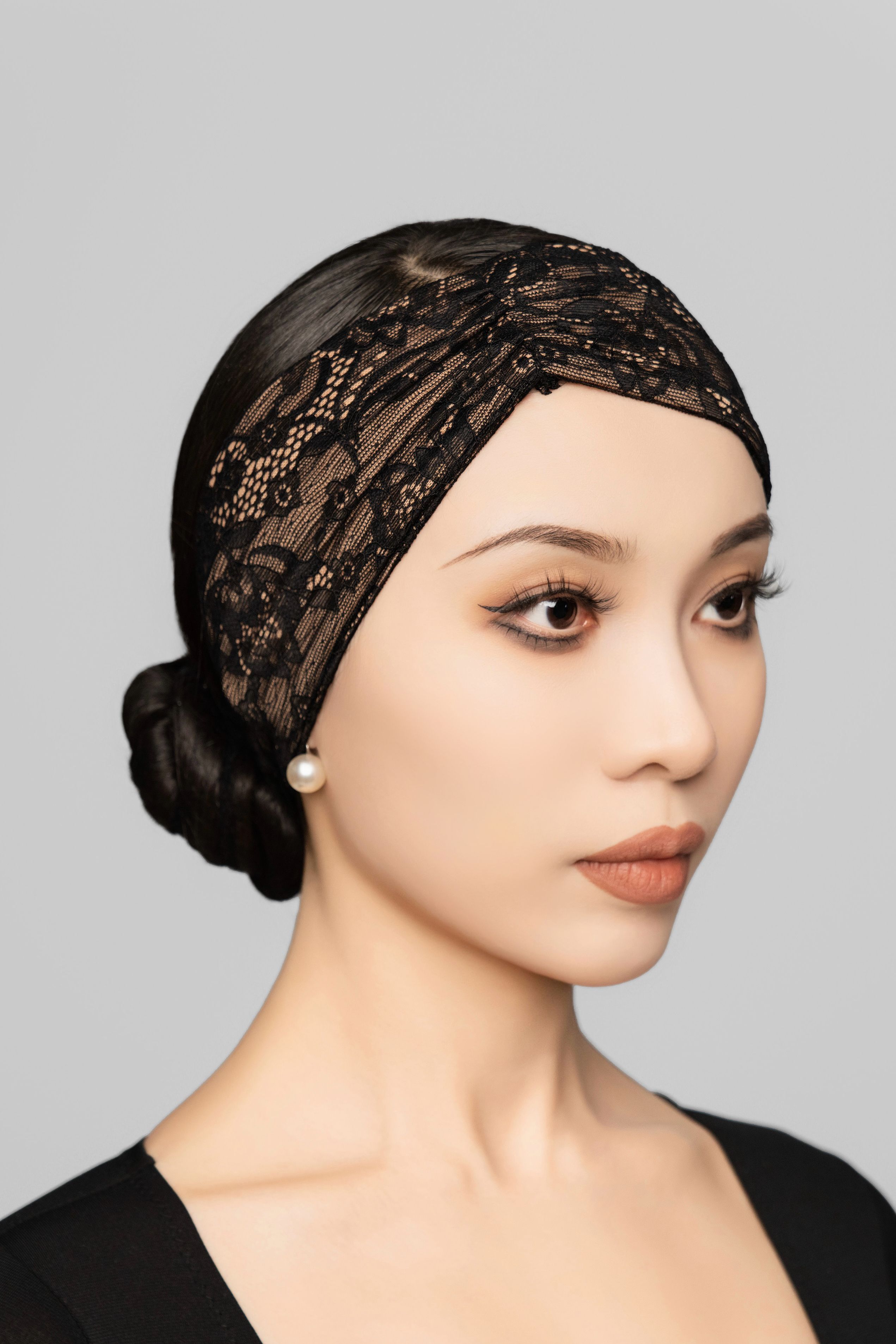 Home > Women > Women's Deep V Lace - Trimmed Long - Sleeve Jumpsuit (Black/Including Hair Accessories)